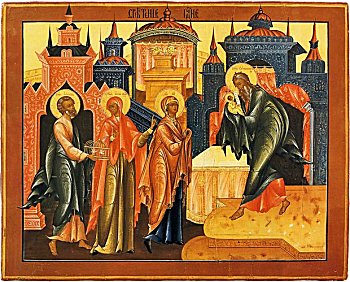 Russische Ikone um 1800, Darstellung Jesu im Tempel |